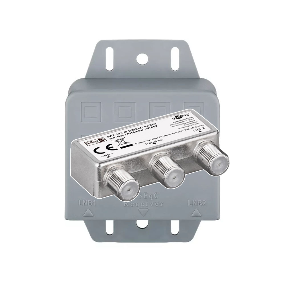 För omkoppling mellan 2 LNB – Frekvensområde 900-2400MHz – Dämpning 3dB