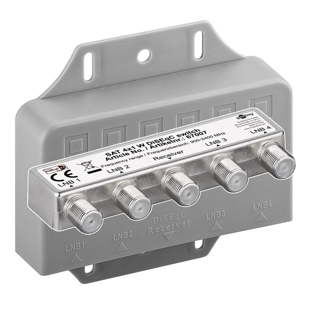 För omkoppling mellan 4 LNB – Frekvensområde 900-2400MHz – Dämpning 3dB