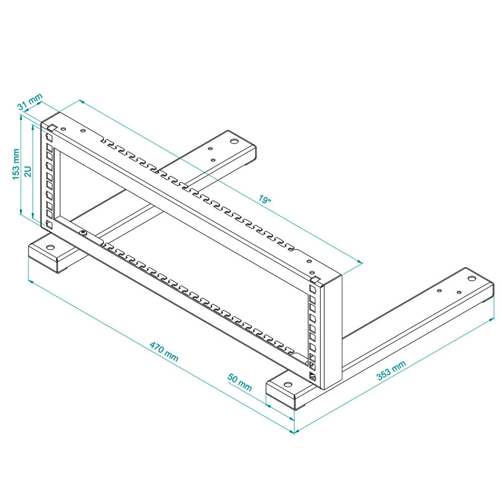19″ stativ 2 höjdenheter för montering under eller på bord,